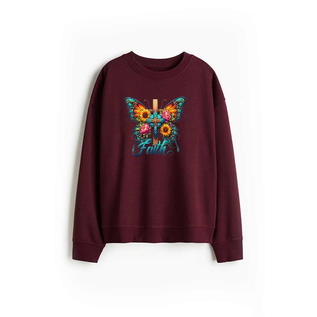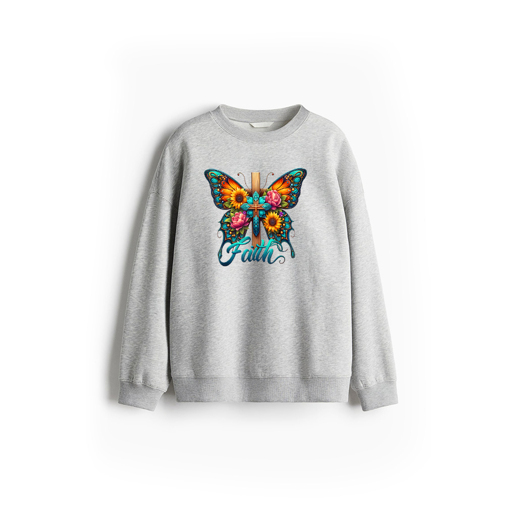 Faith Cross Sunflower Butterflies Flowers Christians Vintage Sweatshirt