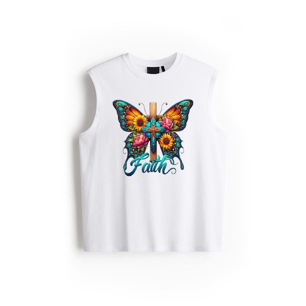 Faith Cross Sunflower Butterflies Flowers Christians Vintage Tank Top