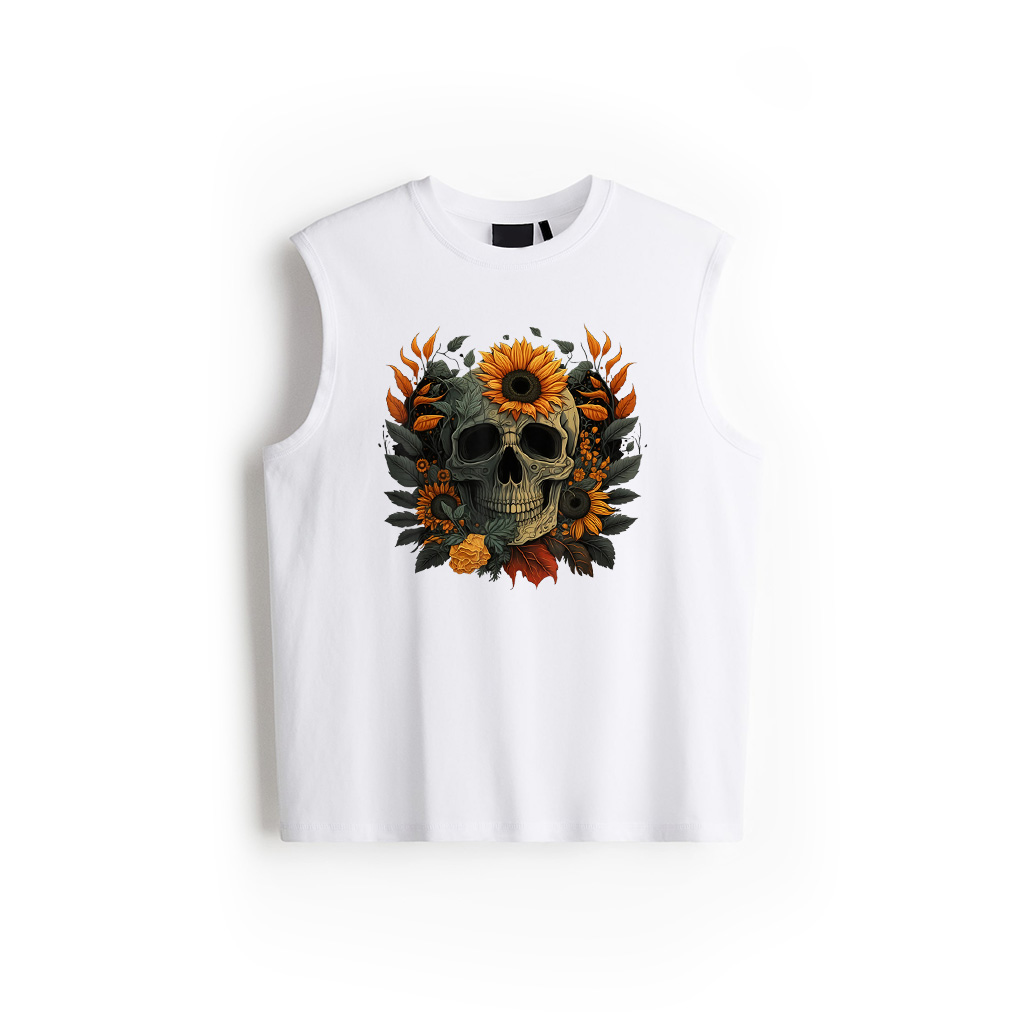 Floral Gothic Sunflower Skull On Sunflowers Tank Top